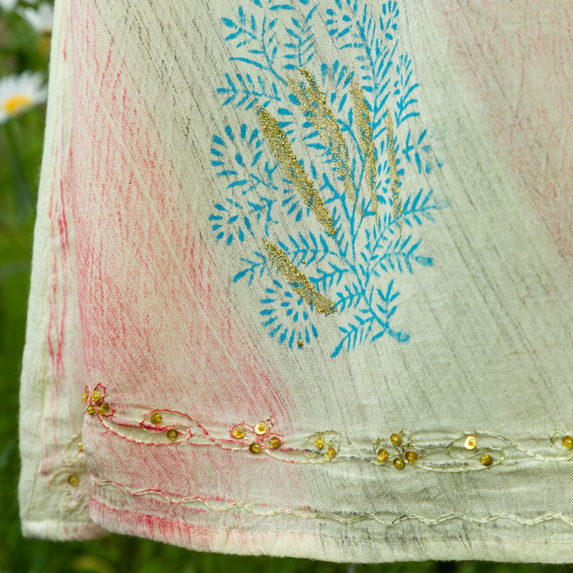 It really does take a village to contribute to each item’s beauty. Every step in the process—from making the fabric, stitching it together, adding embroidery, dyeing the fabric and applying any number of unique prints and designs—highlights the skills and beautiful traditions found throughout the 25+ villages involved.