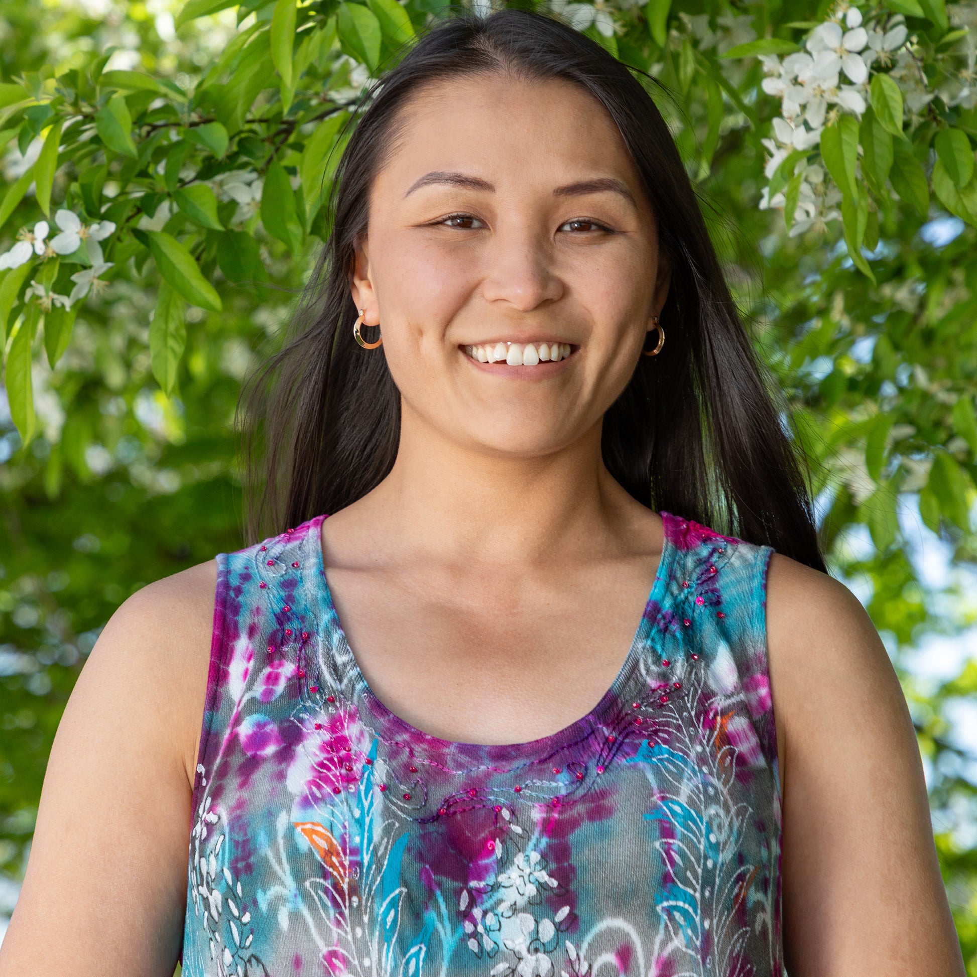 A vibrant blend of color and craftsmanship, this sleeveless tie-dye dress is made from 100% lightweight rayon with a relaxed fit and flowing V-shaped hem. Choose from two stunning palettes—sunset-inspired coral, orange, and pink, or cool blues with raspberry tones. Finished with delicate embroidery and beading at the neckline and hem, it's an effortless pick for beach days, market strolls, or breezy getaways.