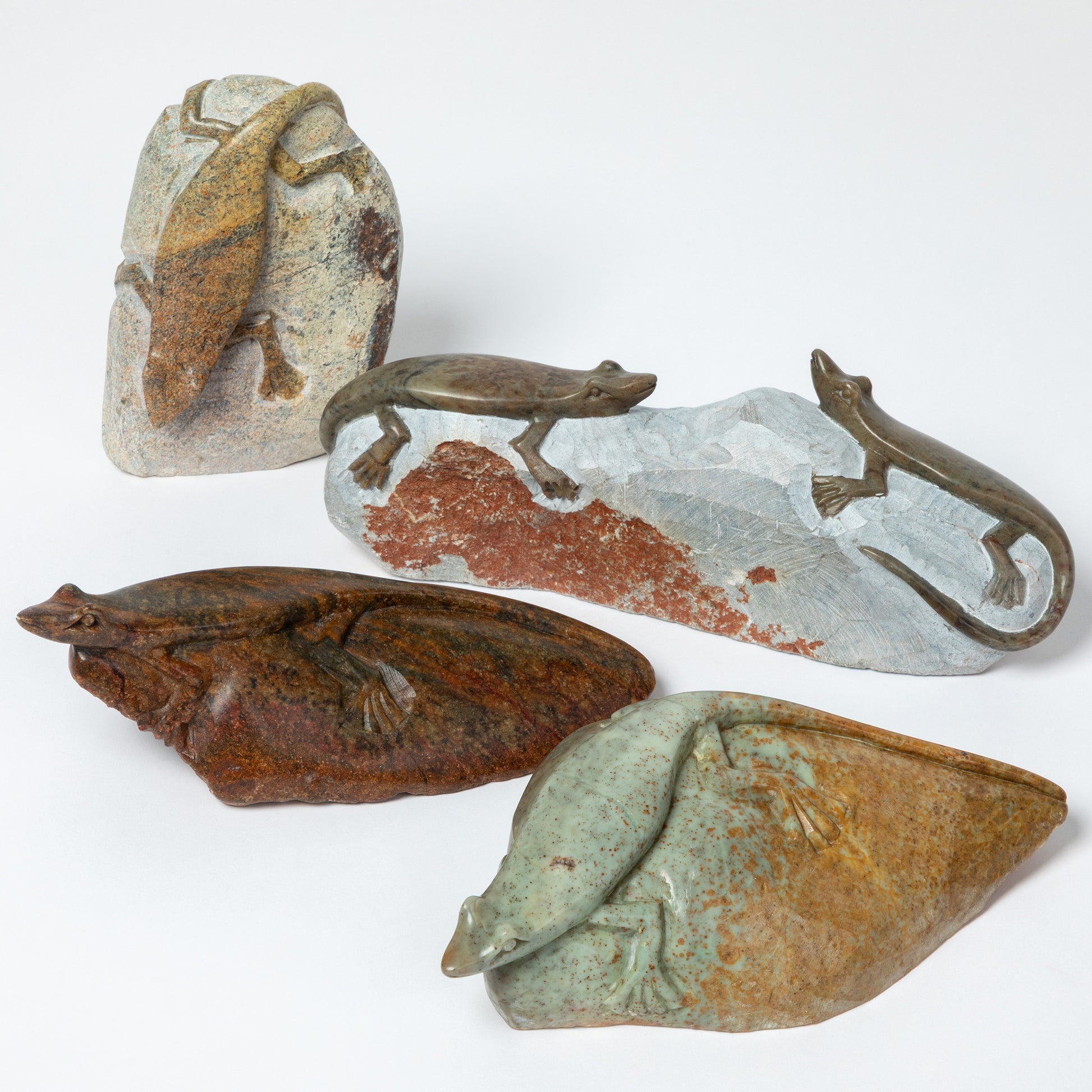 Bring the wild charm of nature into your space with this unique sculpture from Zimbabwe. Hand-carved from natural serpentine stone, each figurine features a beautifully detailed lizard or two, lounging atop the stone’s surface. No two are exactly alike, making every figurine a one-of-a-kind accent for any shelf, desk, or display.