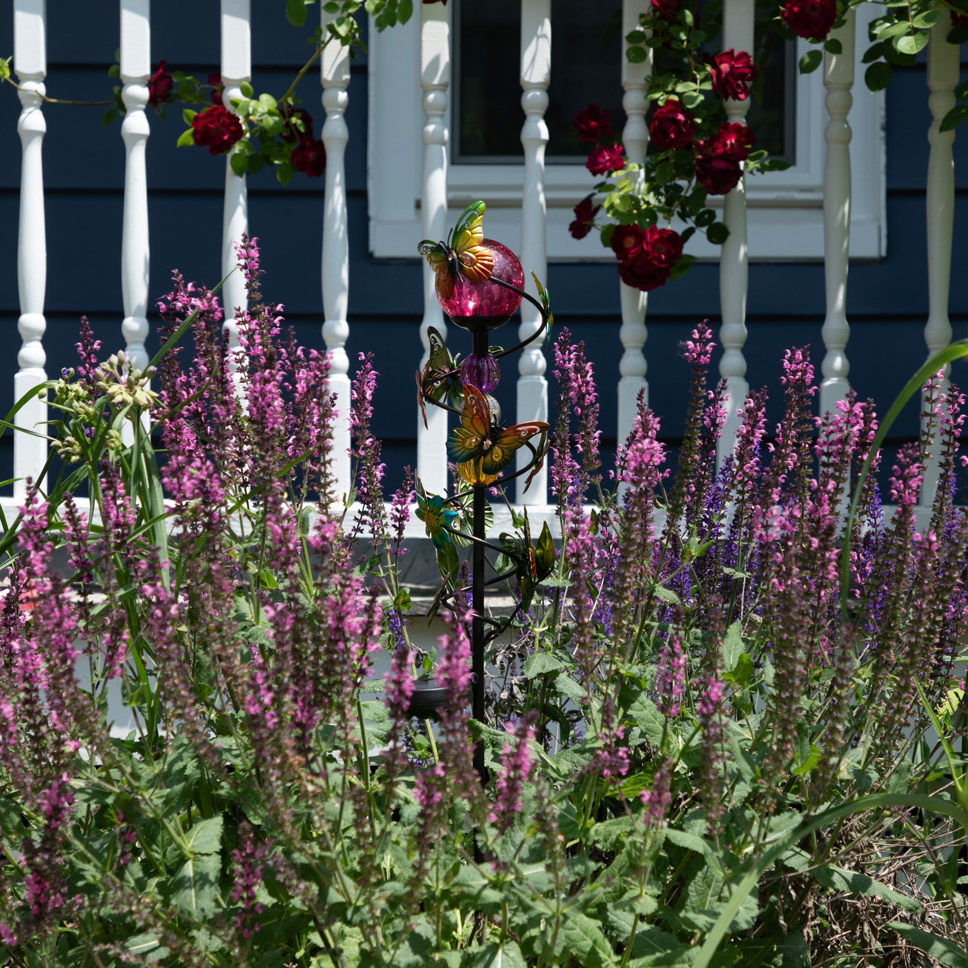 A glowing garden delight. Choose between charming bees or fluttering butterflies—each stake features cheerful garden friends perched among colorful blooms. By day, they add a playful pop of color; by night, built-in LED bulbs cast a gentle glow, creating a magical ambiance powered entirely by the sun. A sweet, shining touch for gardens, patios, walkways, or anywhere that could use a little extra cheer.