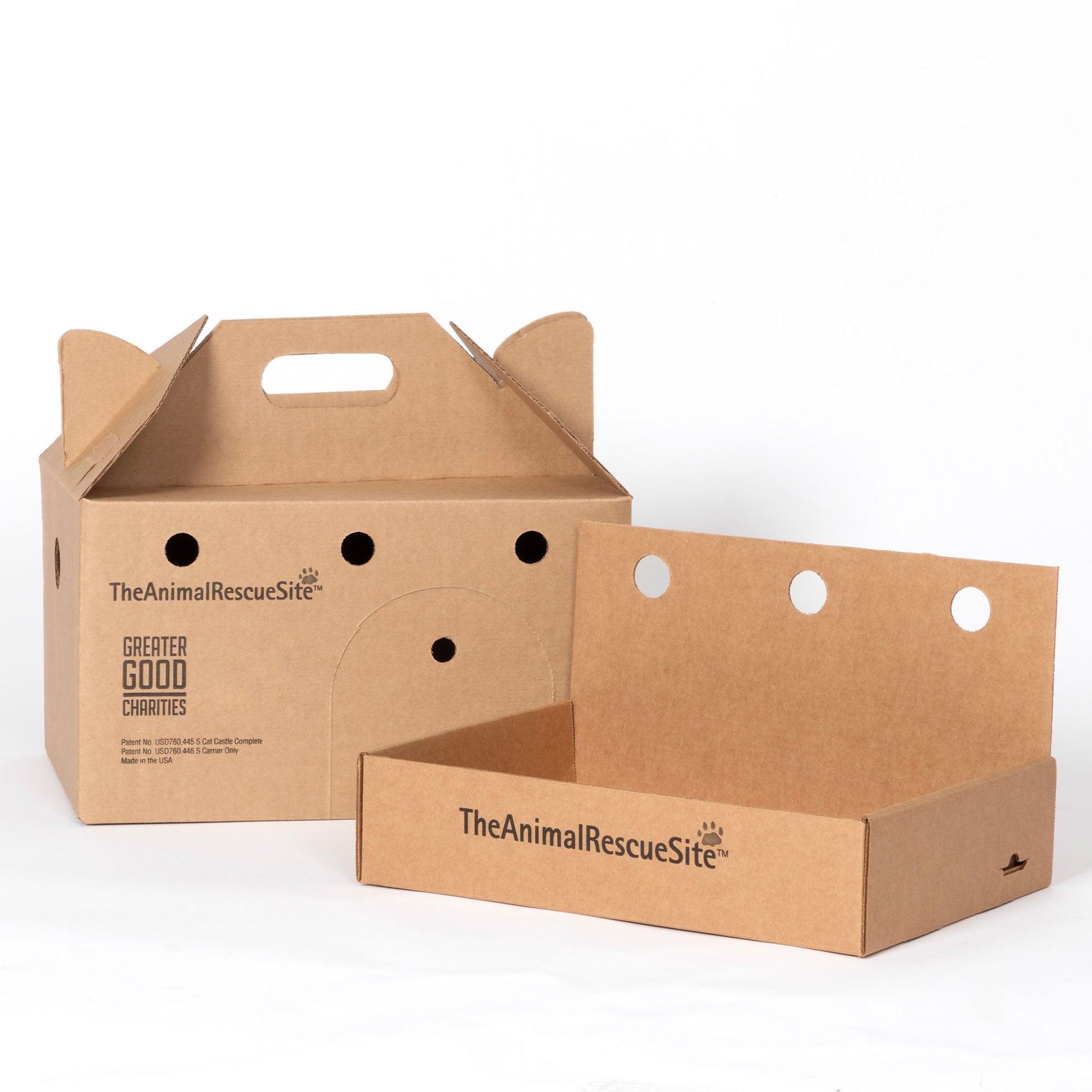 When these little kings and queens are adopted into a new family, the Cat Castle easily transforms into a secure cat carrier for transportation. The box can then be reassembled into the Castle format to provide a safe, familiar retreat that is already saturated with the cat's own scent, while the cat adjusts to their new setting peacefully. This is a much smoother transition than coming straight from the shelter with no familiar comfort.