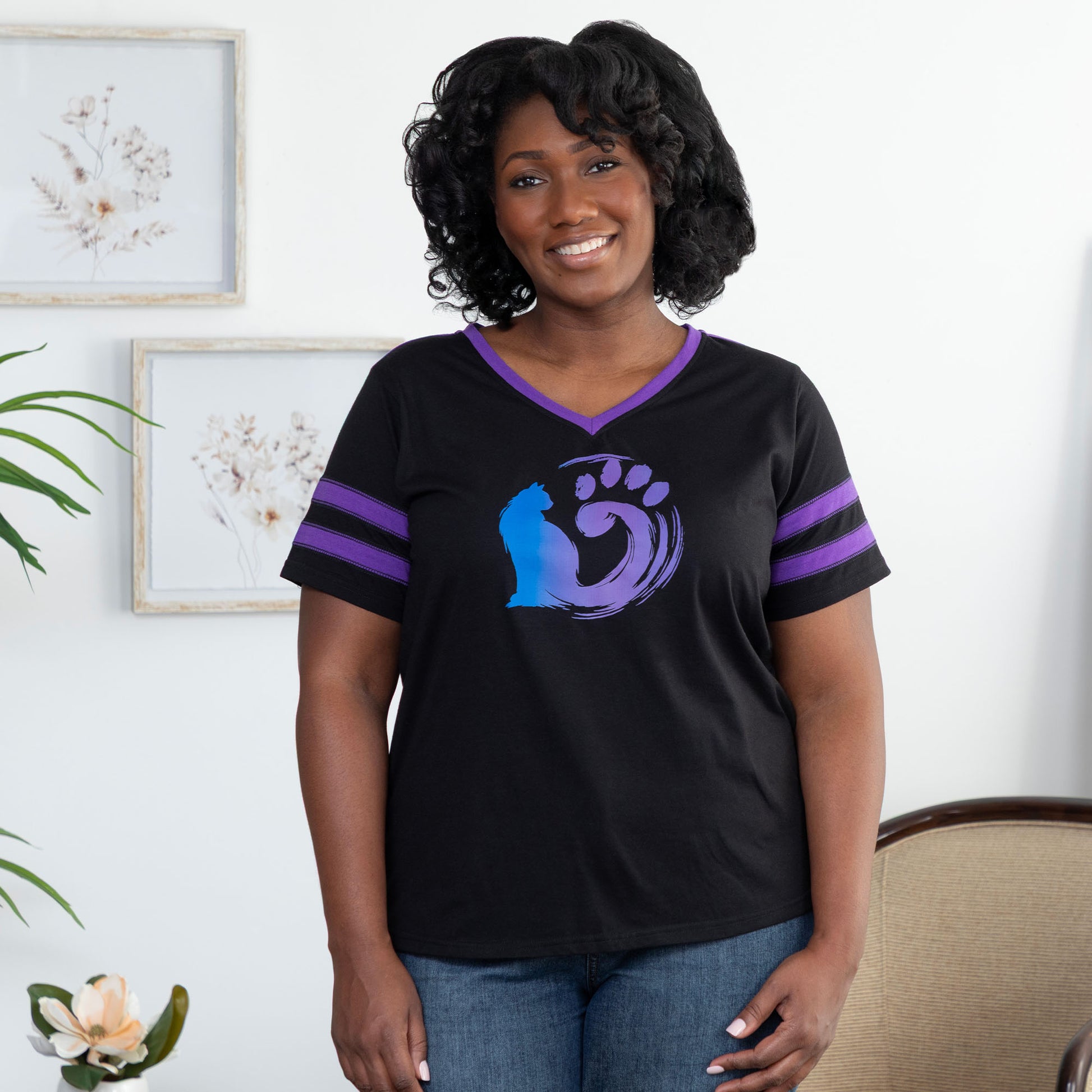 This soft V-neck cat graphic tee is made from a breathable cotton-poly blend that feels lightweight, smooth, and comfortable for all-day wear. The flattering neckline and relaxed fit are elevated by a striking cat silhouette fused with a paw print - a stylish, artful design made for true cat lovers. Easy to dress up or down, this everyday cat lover T-shirt delivers effortless style, durability, and feel-good softness in one standout top.