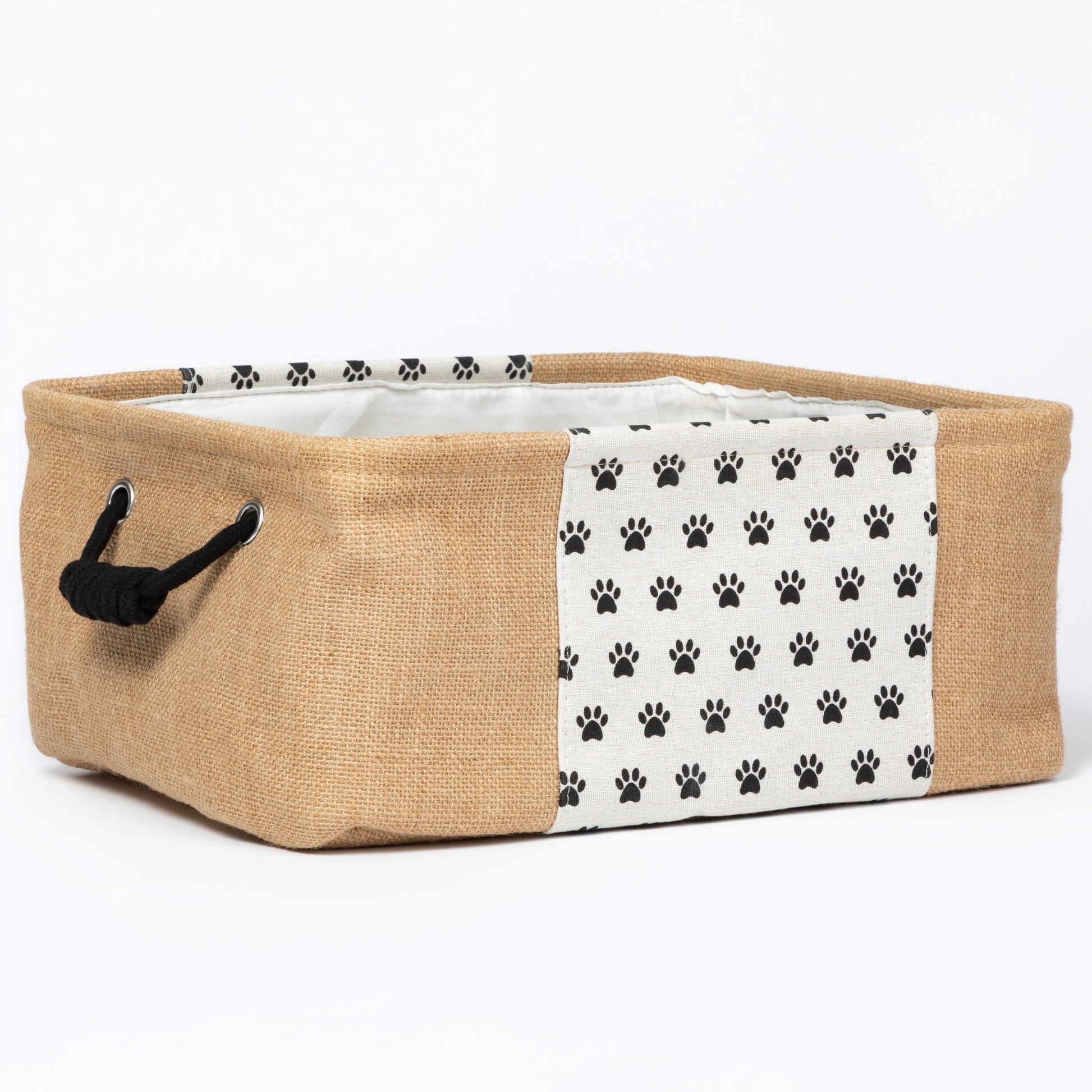 Tidy up your space with a paw print storage basket, designed with durable burlap accents, a soft linen lining, and convenient side handles for easy carrying. Perfect for organizing pet toys, blankets, or everyday essentials, it adds a charming touch while keeping clutter at bay. Versatile and functional, it’s a simple solution for any room in your home!