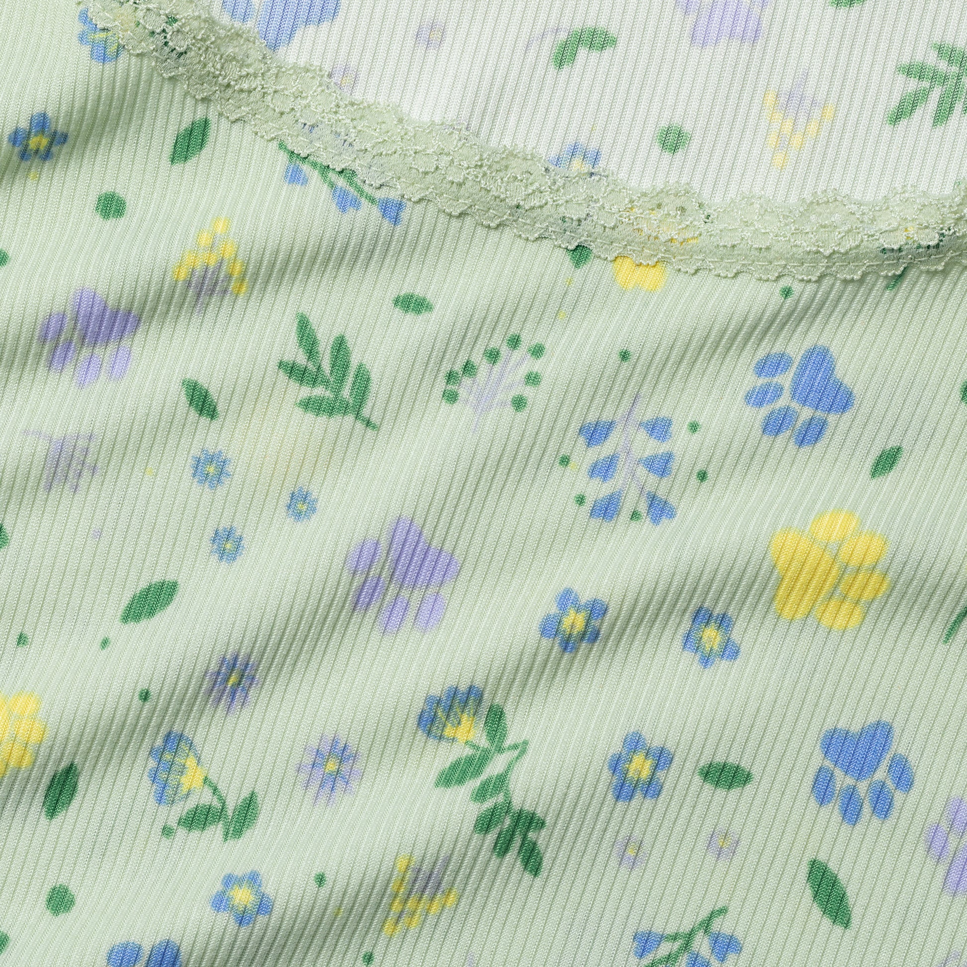 Soft, feminine, and made for sweet dreams, this capri pant set brings cozy comfort with a charming floral and paw print design. The ultra-soft rib fabric offers a gentle stretch for a flattering, easy fit, while delicate lace trim at the scoop neck and scalloped edging add a playful touch. Matching capris feature an elastic waistband with an adjustable drawstring and convenient side pockets for relaxed lounging day or night.