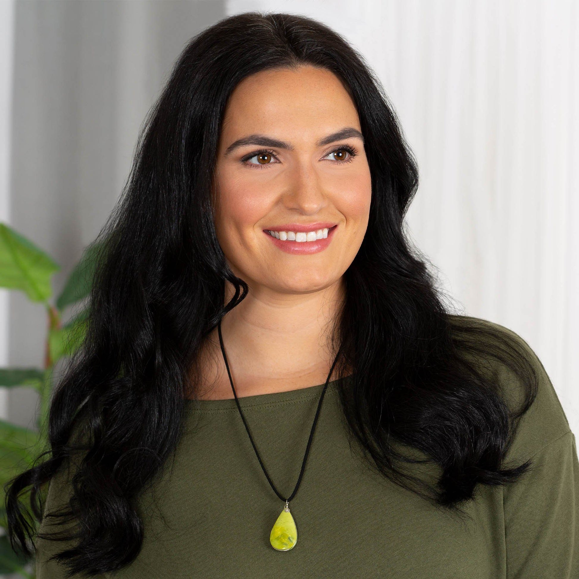 A colorful, gorgeously polished teardrop stone hangs from a soft black leather cord for an accessory that overflows with positivity. Each stone is believed to hold varying strengths and beneficial uses, like removing negativity, emotional cleansing, meditation, building self-confidence, and offering protection to the wearer. Whatever your reason for donning this vibrant stone, your purchase supports the artisans that crafted it.