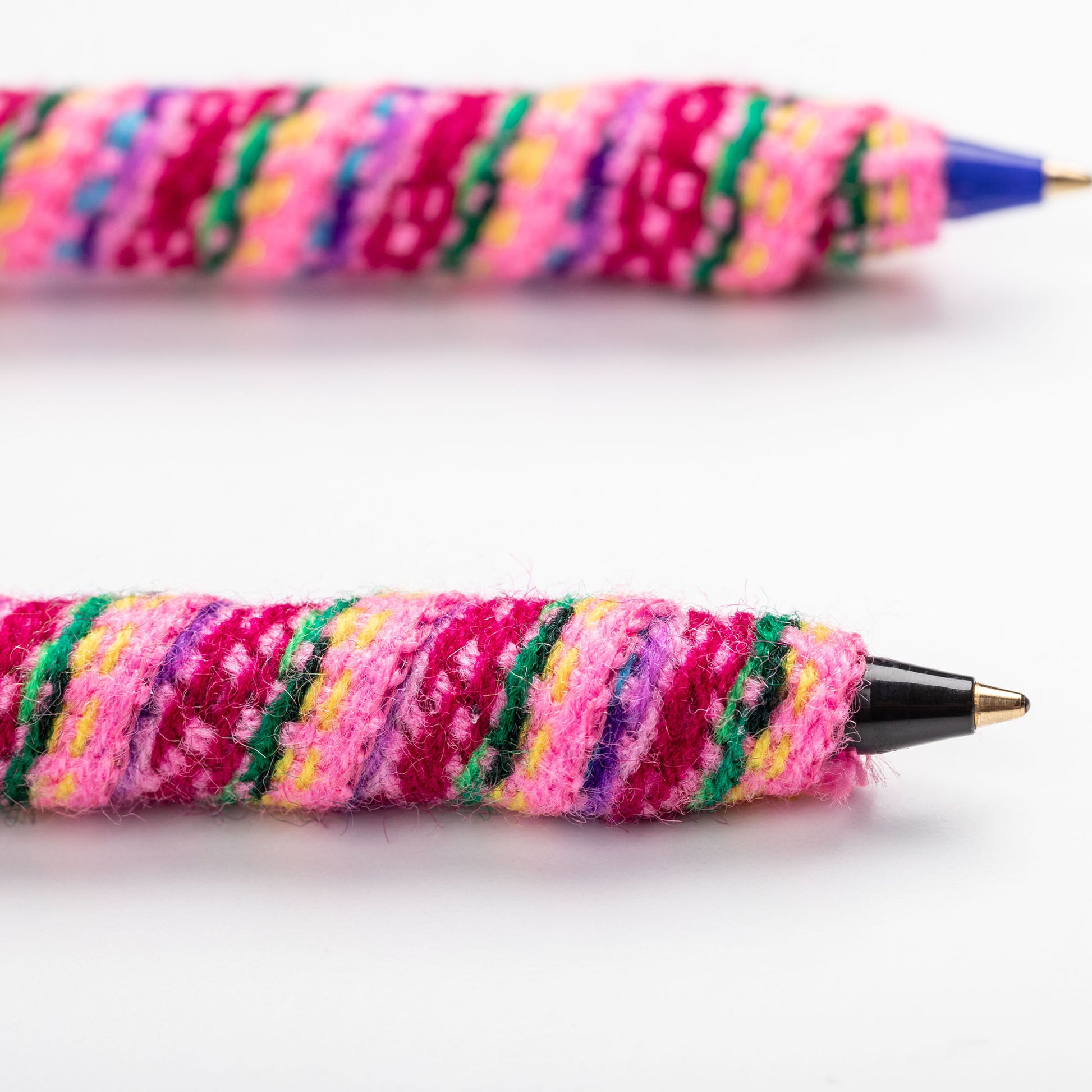 V. These pens are colorful and fun. The covering is good and holds up well. Colors are bright and item looks like the picture online. Fun for adults.