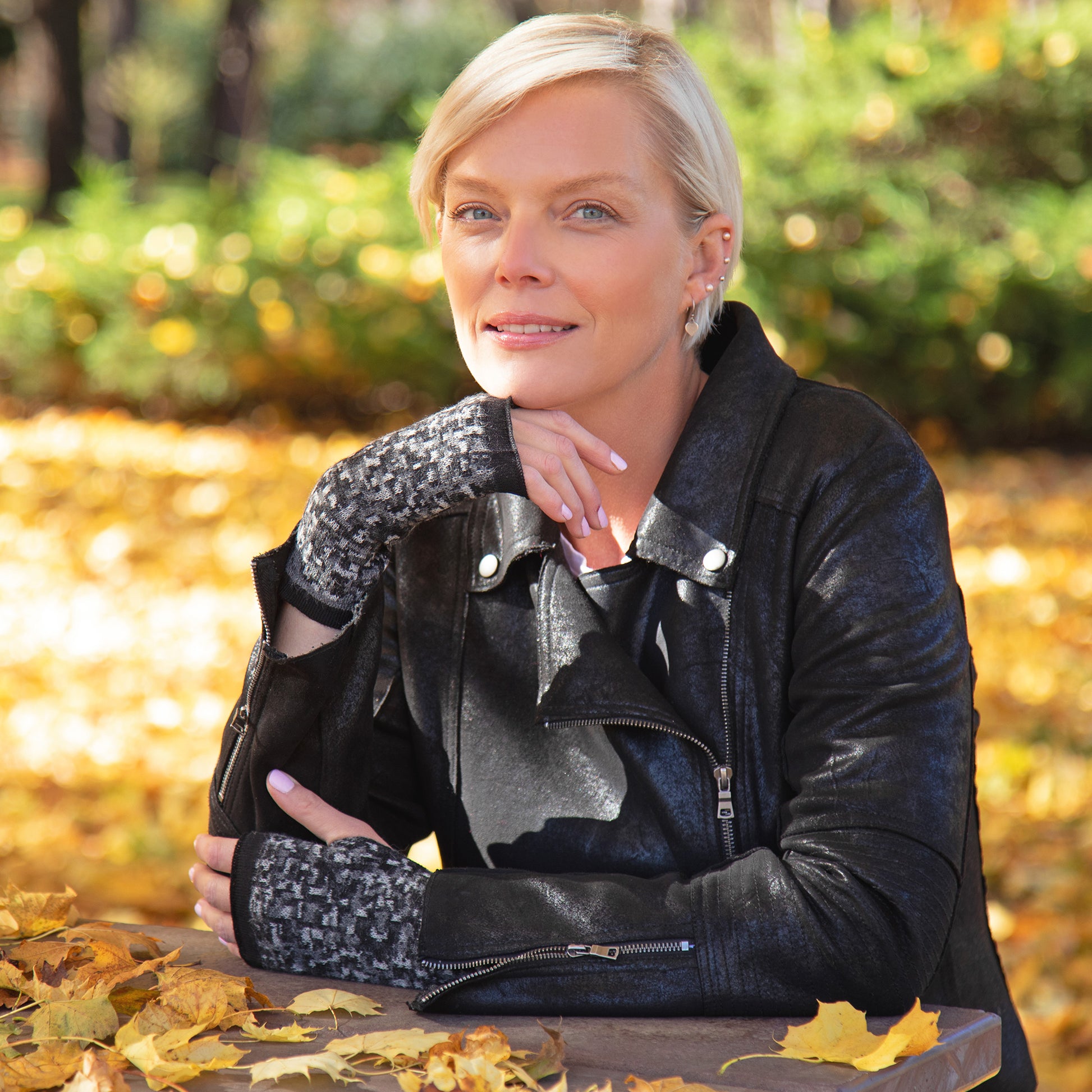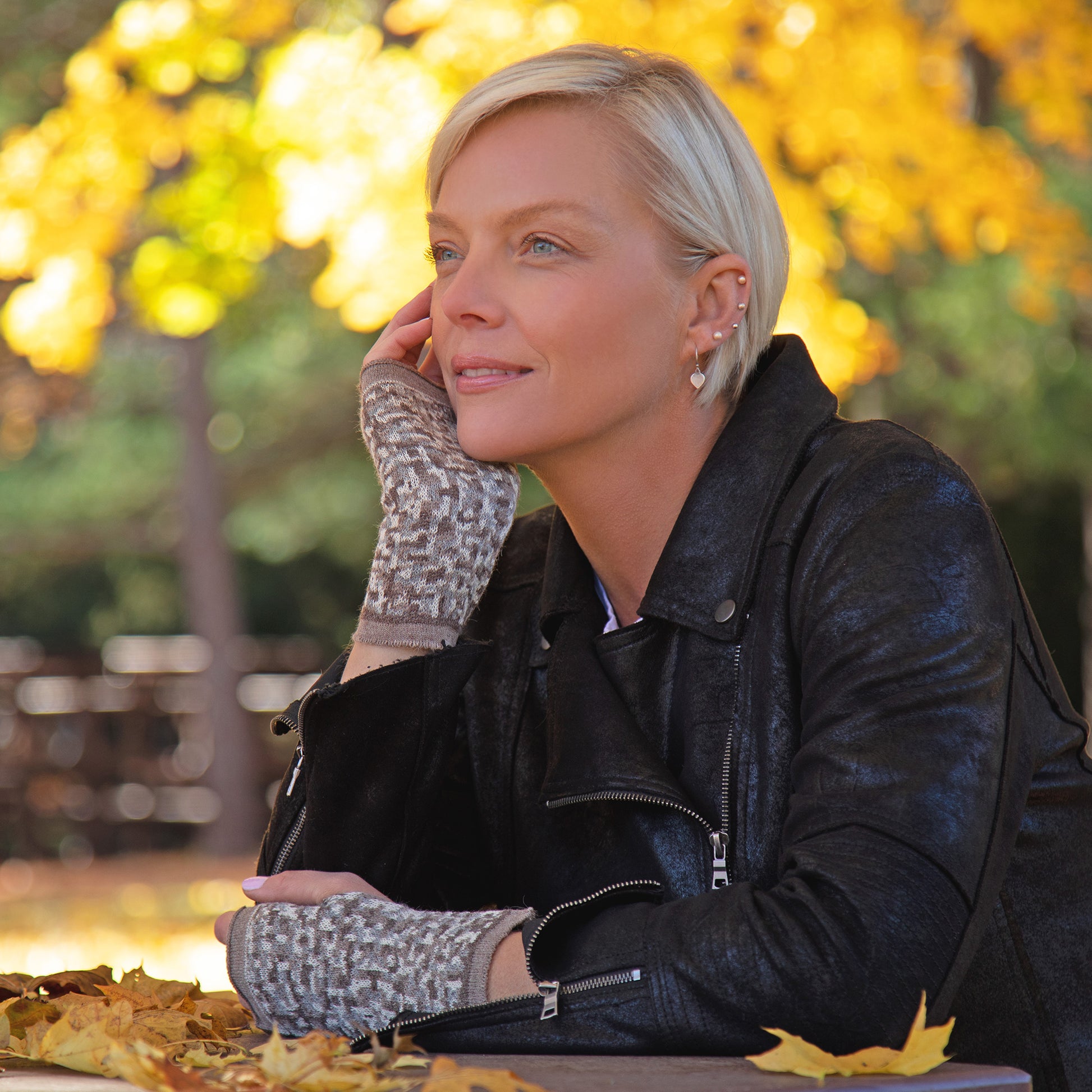 Small Squares Baby Alpaca Fingerless Mittens