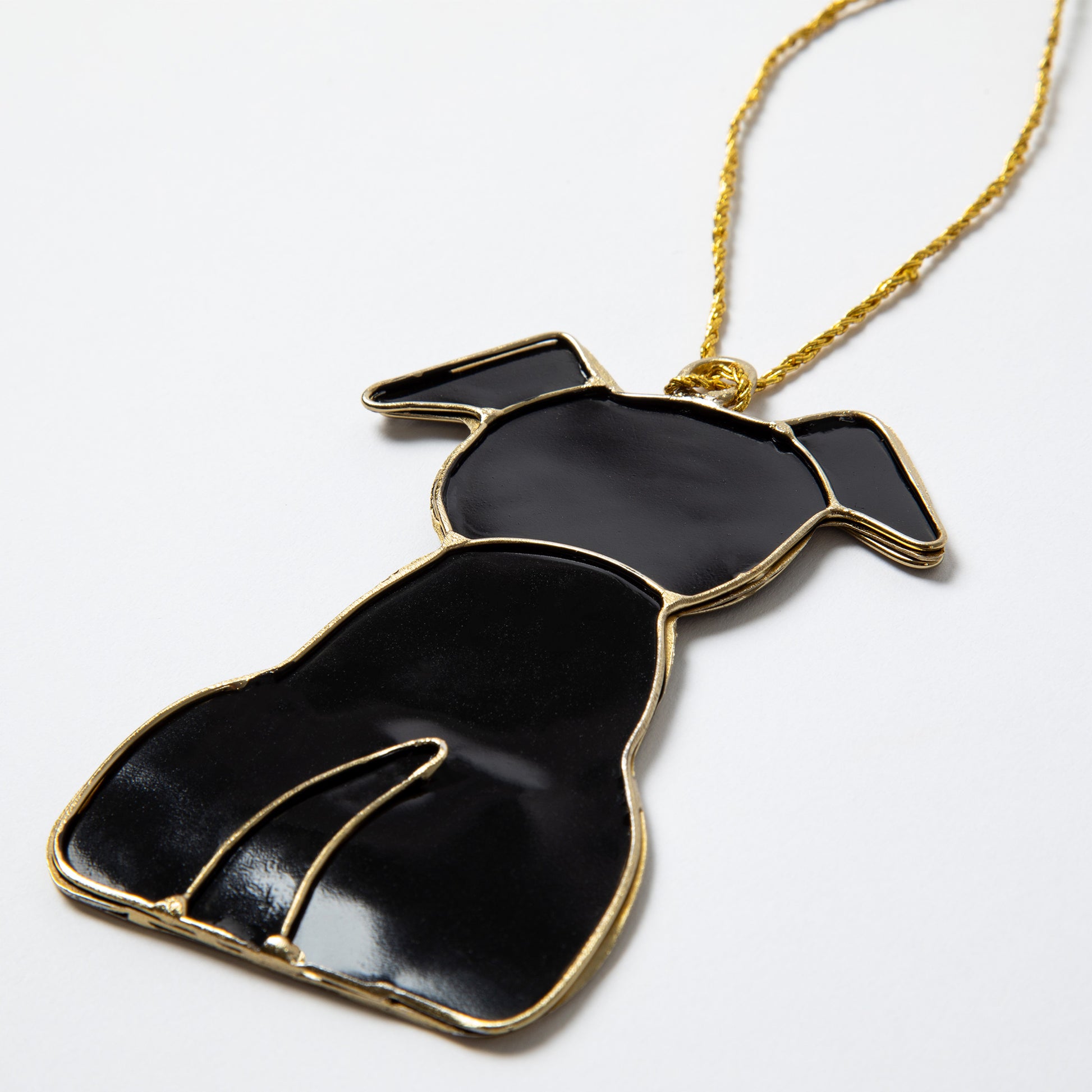 Let this cute wagging tail greet you every time you look at your Christmas tree. Handmade out of glass and metal, this set of two ornaments -- one black and one cream colored -- shows your love of dogs during the holiday season.