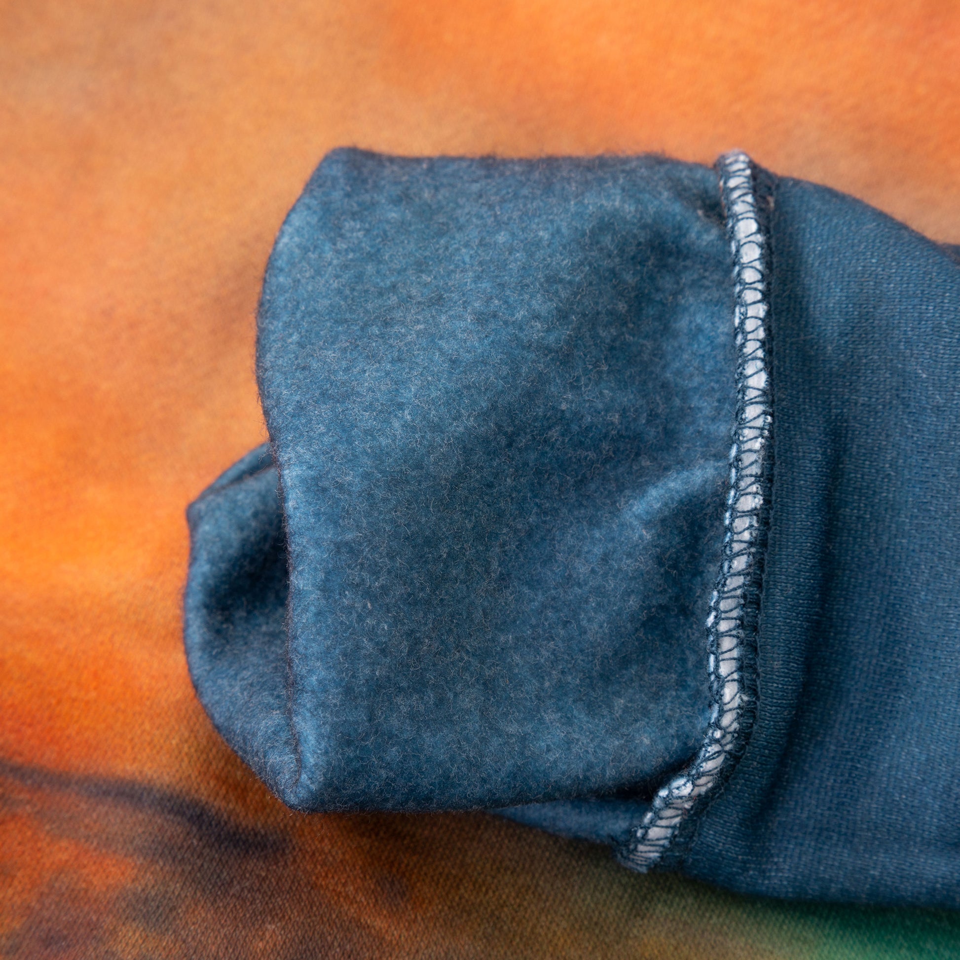The colors of this sweatshirt are very beautiful and unusual. I've worn it out several times and have received compliments. The wrists were too tight so I cut the cuffs off and sewed under the end of the sleeves - no problem.