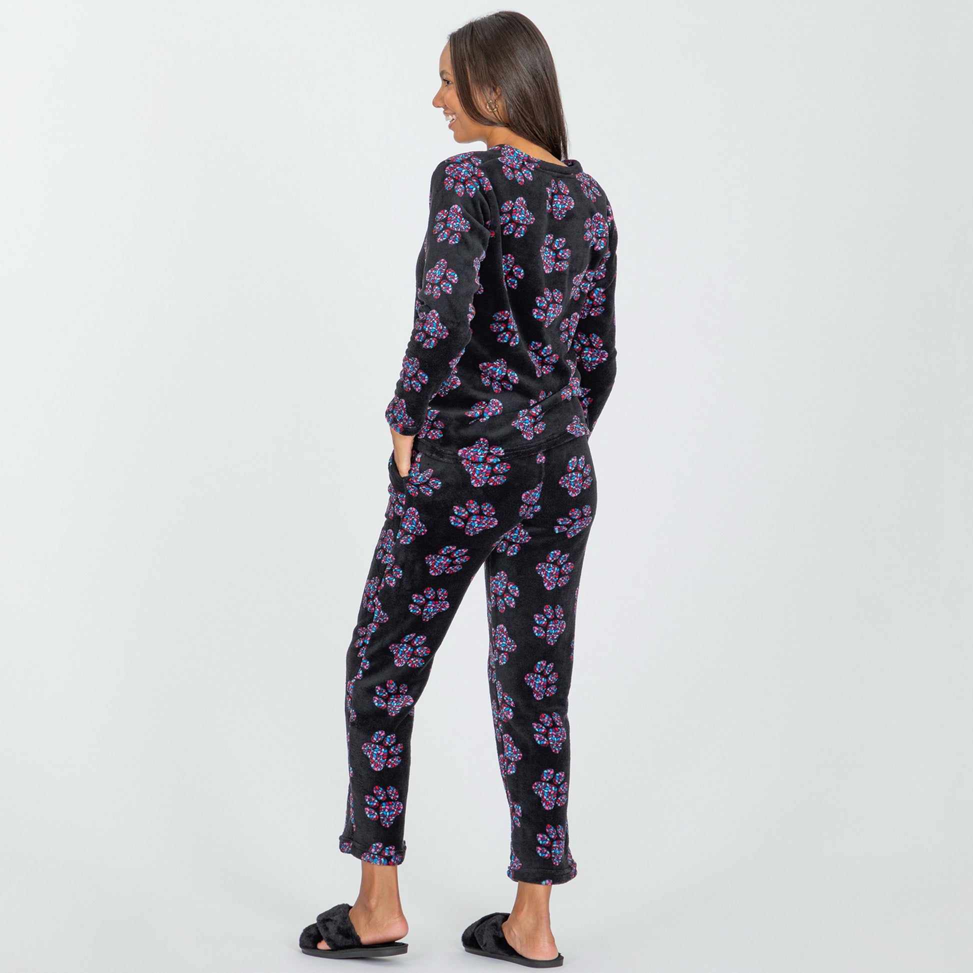 Snuggle up in paw prints and supreme softness with this Super Cozy™ fleece pajama set! The long sleeve top features a v-neckline and the pants offer an elastic waistband with a drawstring for the perfect fit. Plus, pockets!