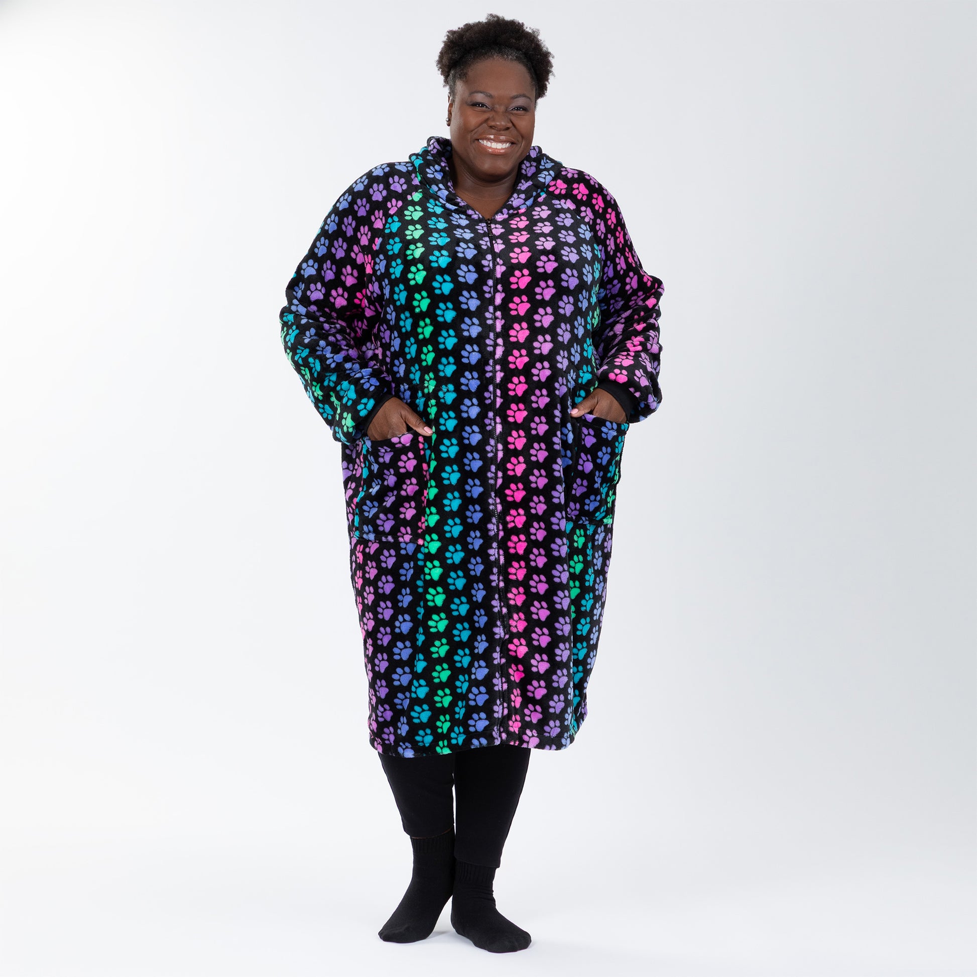 Super Cozy™ Paw Print Full Zip Blanket Hoodie with Waist Toggle