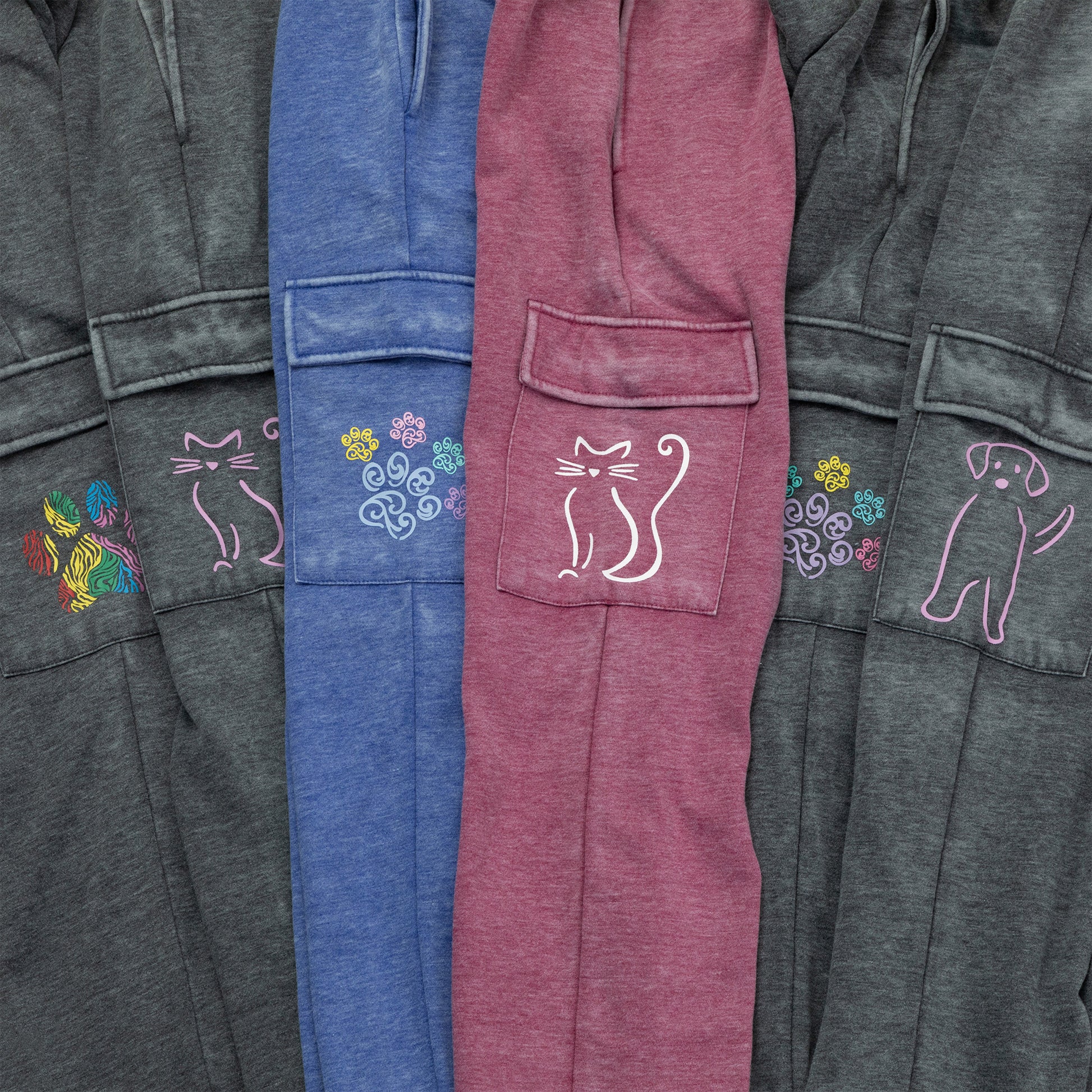 Cute, comfortable, and totally lounge-worthy! Made with a soft cotton blend in a burnout fabric, this lightweight pair flaunts an open leg that isn't constricting at the hems, a comfortable drawstring waist, and pockets. Topped with a rainbow colored zebra print paw on the cargo pocket as a symbol of your animal advocacy!