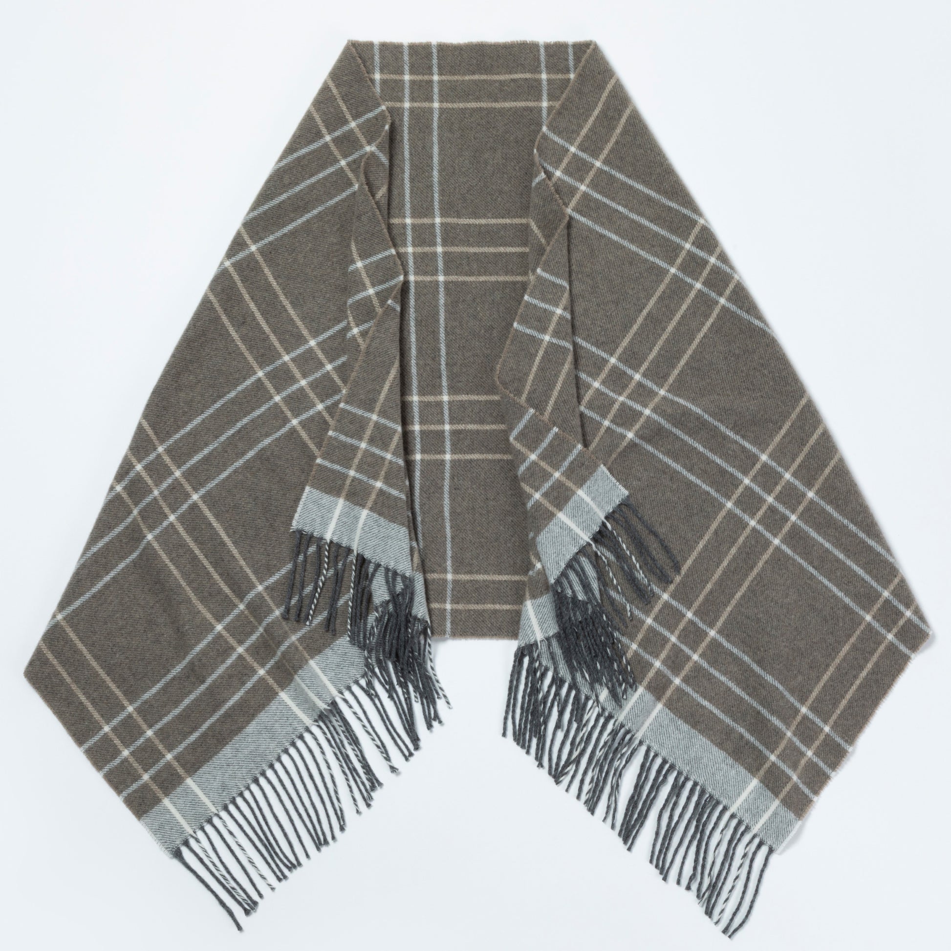 A brilliantly soft merino wool and cashmere blend that provides comfort and warmth for everyday use, this blanket scarf is a cozy, cold weather essential. Woven with an array of versatile colors in a classic plaid design with soft fringed edges, this shawl provides a look that will never go out of style.